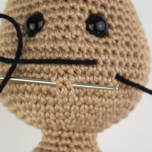 Mund aufsticken bei Amigurumis und Häkeltieren - hier am Beispiel von meiner Anleitung Wummel