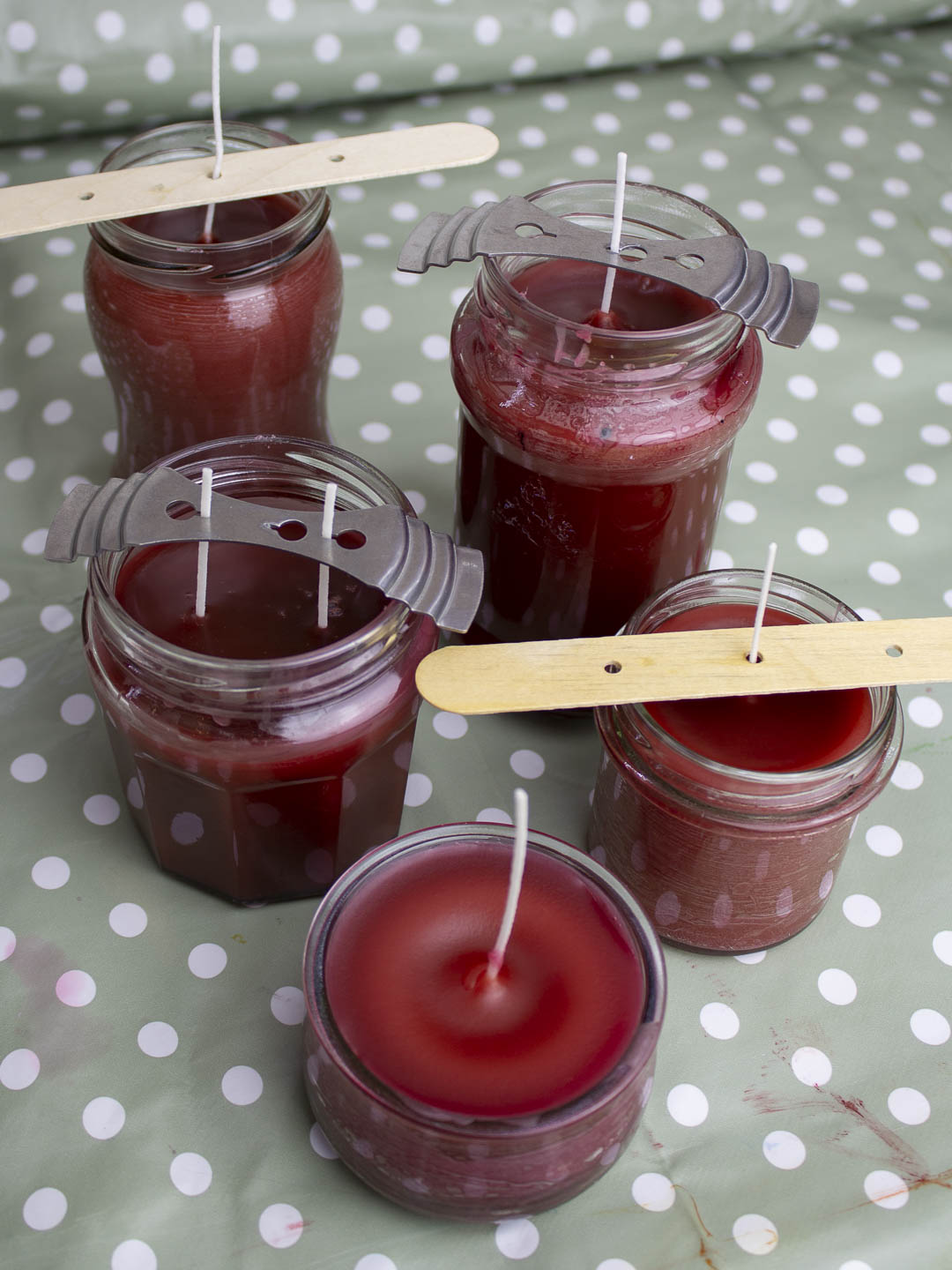 Ich hatte zum Schluss kein Wachs mehr übrig, deswegen haben meine Kerzen noch Krater.